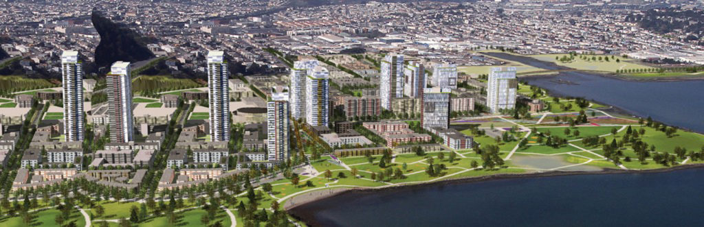 Lennar issued a concept plan, whose #1 objective was to, “Realize the full potential of the underutilized Candlestick Point by creating a complete and thriving new neighborhood intimately connected to the Bayview and the rest of the city.” They outlined a policy to create a balanced and complete mix of uses: “Land use in San Francisco is to a large extent mixed use in nature. In such environments, neighborhood-serving retail, such as food stores, laundry services, and other sundry needs, are located adjacent to residential uses. Job-creating uses such as offices, workshops and institutions are also nearby… Recreation and entertainment facilities are similarly interspersed throughout…”